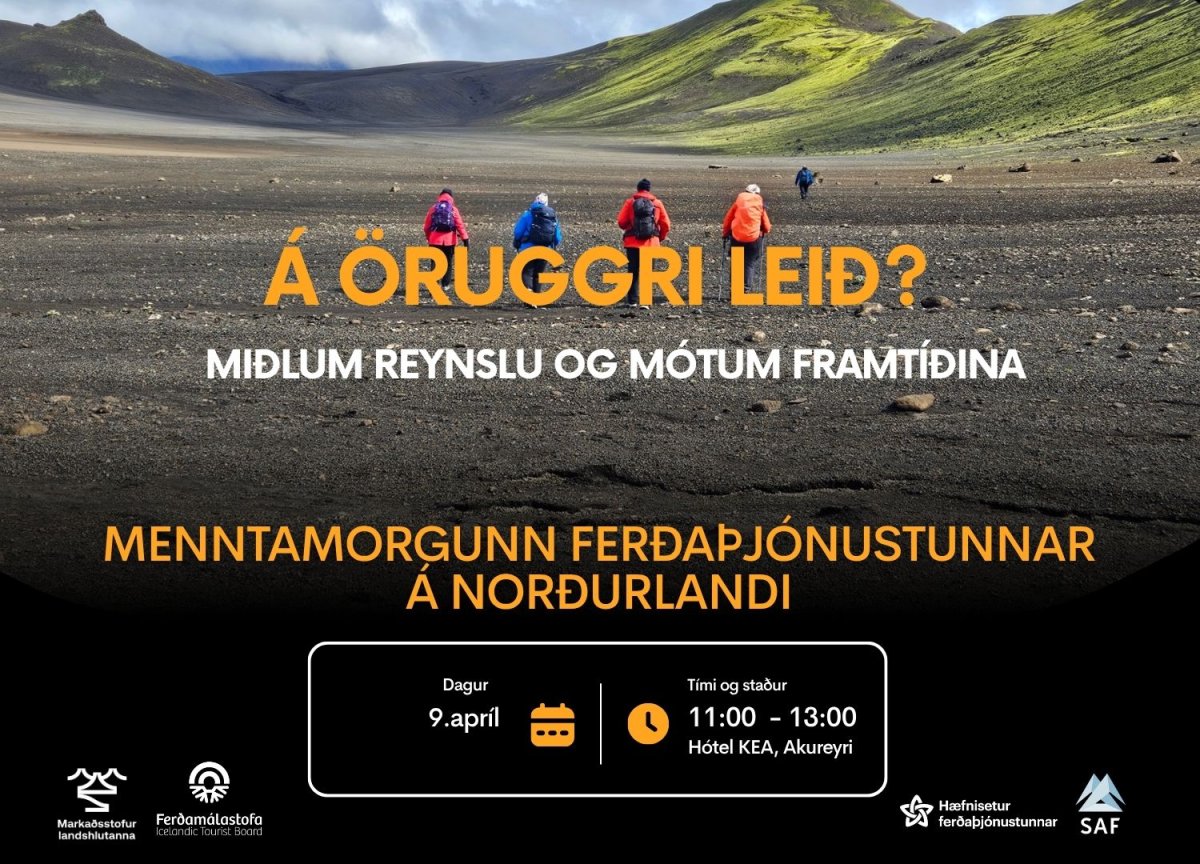 Menntamorgunn ferðaþjónustunnar bregður sér norður yfir heiðar til Akureyrar og býður ykkur til stefnumóts um öryggismál í íslenskri ferðaþjónustu fimmtudaginn 9. apríl kl. 11:00–13:00, á Hótel Kea.