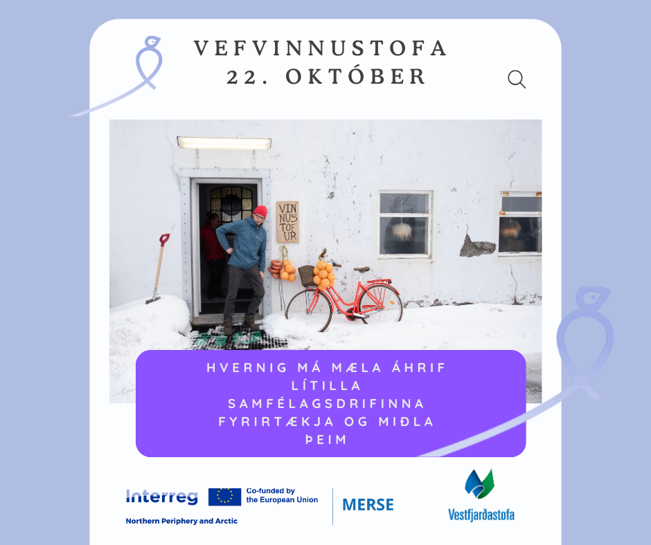 Þann 22. október fer fram vefvinnustofa á vegum MERSE verkefnisins undir yfirskriftinni: Hvernig má mæla áhrif lítilla samfélagsdrifinna fyrirtækja og miðla þeim